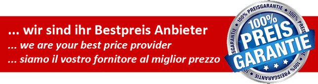 Versand: Wir versenden alle Produkte, innerhalb der EU-Staaten – inkl. Schweiz und GB portokostenfrei – franko Kunde! Bestellungen aus der Schweiz werden vom Lager-Schweiz ausgeliefert.